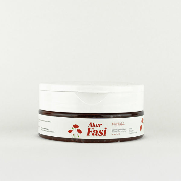 Nom du produit : Gommage gel aker fassi \nType : Cosmétique visage et corps \nAspect, couleur, odeur : Gel, transparent pâle, caractéristique \n \nIngrédients : \nAqua (eau), Chamomilla recutita flower water, Rosa damascena flower water, Mentha \npulegium water, Argania spinosa shell powder, Glycerin, Carbomer, Aloe barbadensis leaf \njuice, Tartaric Acid, Lactic acid, Disodium EDTA, Sodium Sulfite, Sodium Metabisulfite, \nTriethanolamine, Butylene Glycol, Saxifraga Sarmentosa Extract, Carica Papaya Fruit Extract, \nPsidium Guajava Fruit Extract, Papaver rhoeas flower extract, Panthenol, Benzyl Alcohol, \nDehydroacetic acid, Fragrance. \nDescription du produit : \nLe Gommage Gel à l'Aker Fassi est un soin exfoliant innovant qui utilise la puissance de \nl'aker fassi, un ingrédient traditionnel marocain, pour offrir à votre peau une \nexfoliation douce et efficace. Ce gommage, sous forme de gel, élimine les cellules \nmortes, les impuretés et l'excès de sébum tout en respectant l'équilibre de la peau. \nConseil d’utilisation : \nUtiliser sur une peau nettoyée et sèche. Effectuer des mouvements circulaires entre 2 \net 5min puis rincez. Utiliser 1 fois par semaine. \nCondition de conservation : \nConserver à labri de la chaleur et de l’humidité. Ne pas avaler. Tenir hors portée des \nenfants. \nDurée de conservation : 12mois et 03mois après ouverture. \n \nPropriété cosmétique : \nHydratant, exfolient, revitalisant.